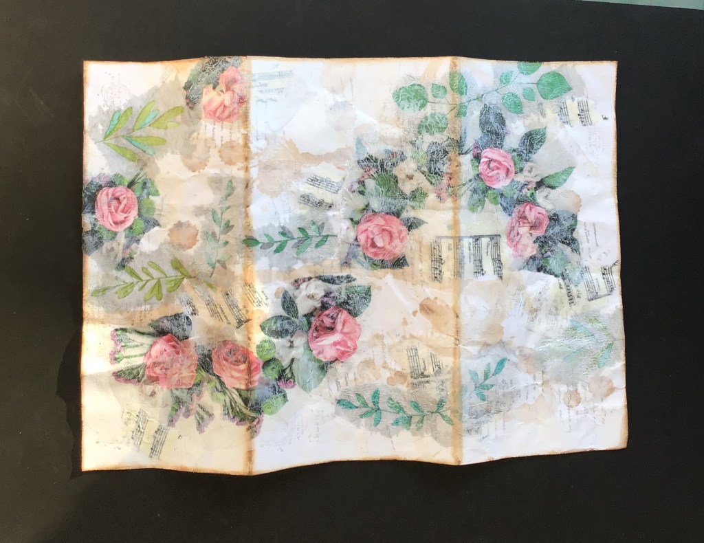 Faites avec du papier taché avec du thé dans un premier temps; puis, j’utilise des morceaux de serviette, du gesso et … new envelopes made with tea dyed paper, napkins and gesso…