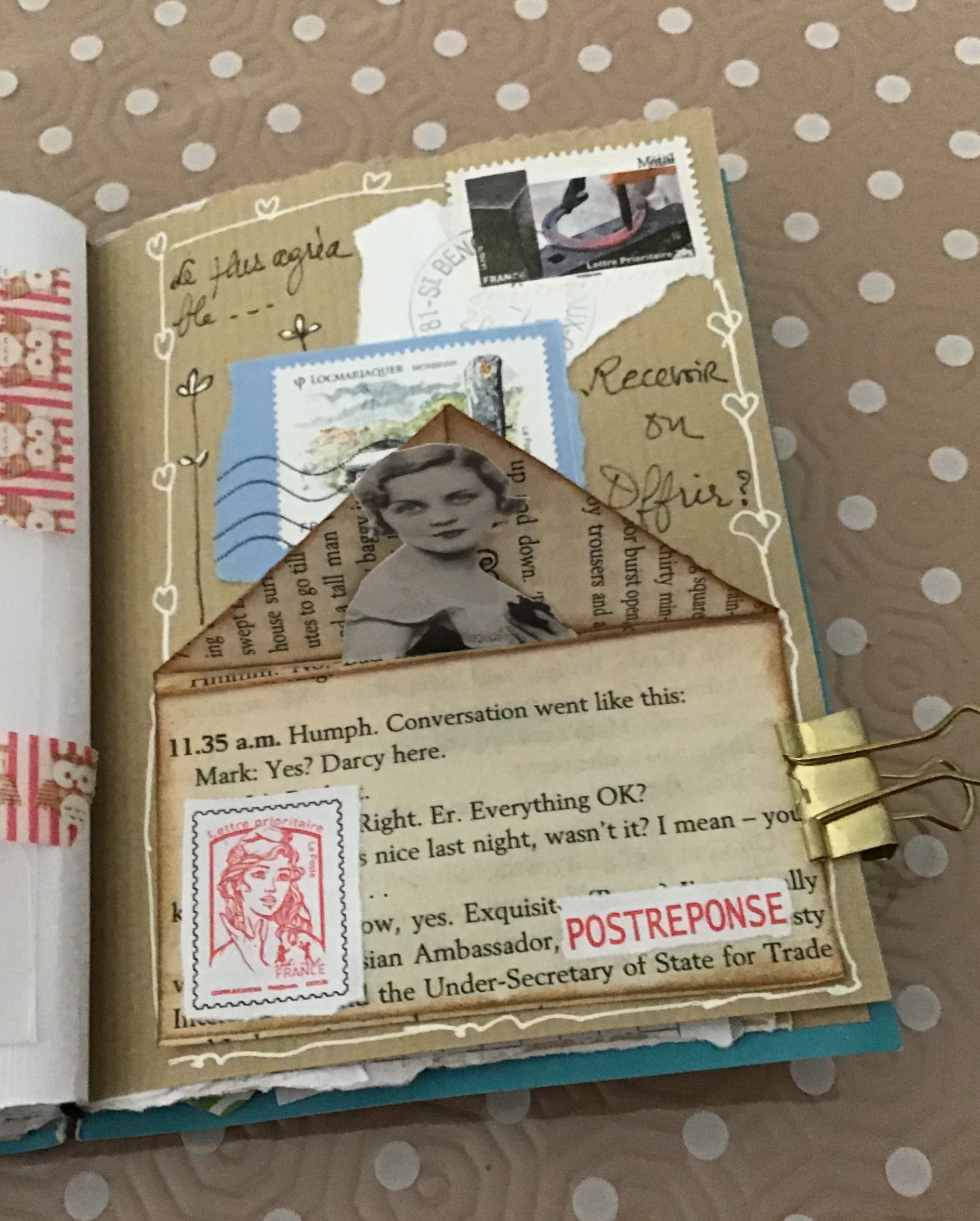 Ou courrier à cachettes/surprises. J’ai pris beaucoup de plaisir à réaliser cette pochette. A pocket I enjoyed realizing.